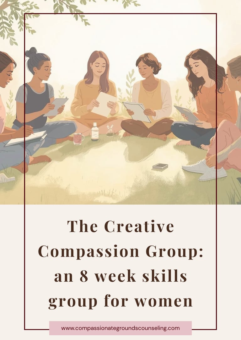 The Creative Compassion Group is an 8 week psychoeducational, skills based group for women who are longing for more presence, self compassion, and gentler ways of being with themselves.
